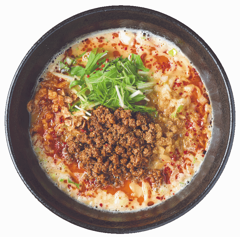 魚介系と動物系だしのうま味が詰まった濃厚白湯スープに、甘みのある肉みそ、ラー油と豆板醤の辛みを利かせた濃厚担々麺が定番。中華出身のご主人が作る、香辛料の香りや素材の食感を生かした一杯は必食。