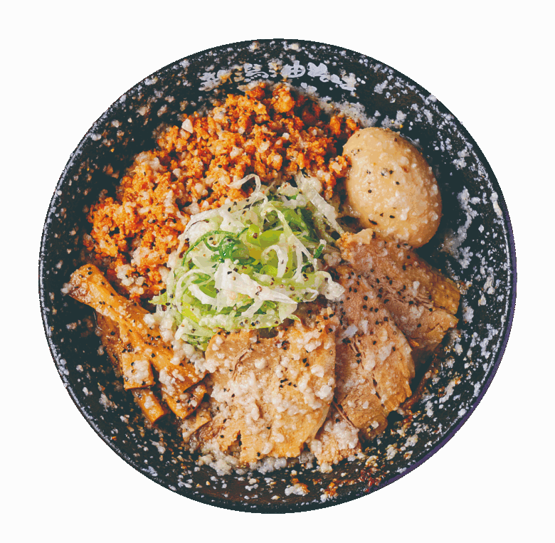 「この油そばを新たな麺文化として新潟に定着させたい」と語るご主人が営む油そば専門店。看板に「背徳感」と掲げる通り、極太麺と厚切り肉にたっぷりの背脂を振りかけたギルティな油そばがウリ。濃厚な見た目に反して、スッキリと食べられるよう工夫が施されている。