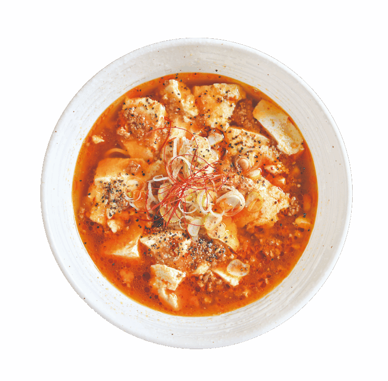 阿賀野市にある「まめ工房いとう」の豆腐を使用。豆本来の味わいが楽しめ、ふんわりと優しい食感が魅力。ほど良い辛さとうま味が調和した至福の一杯。